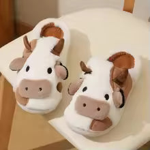 Winter Home Slippers for Couples Warm Plush Neutral Cartoon Cow Indoor Anti Slip Comfortable Cotton Slippers for Men and Women